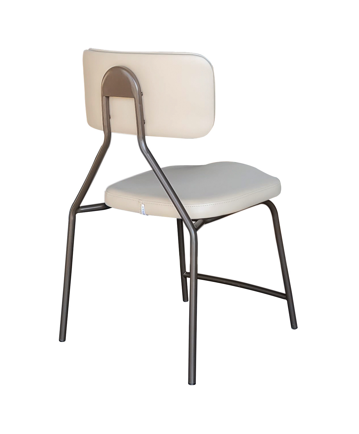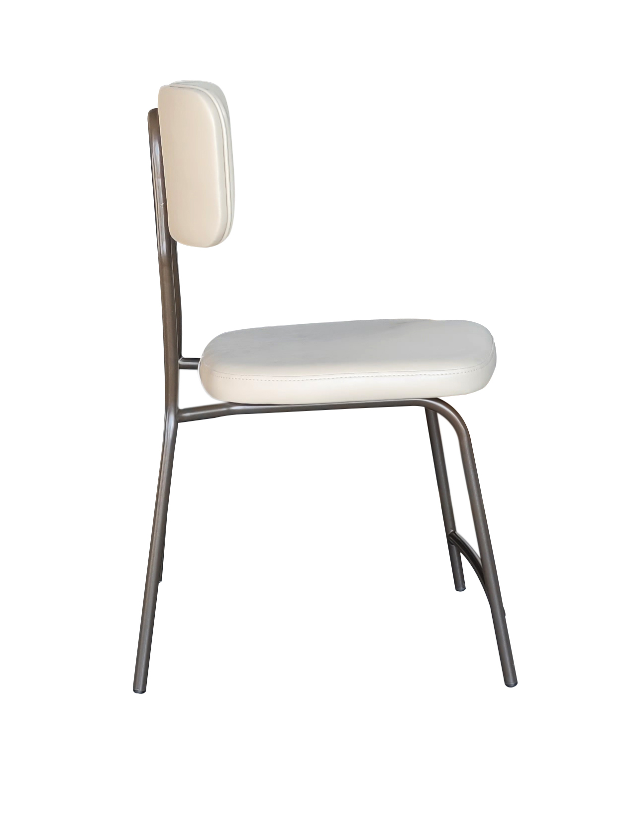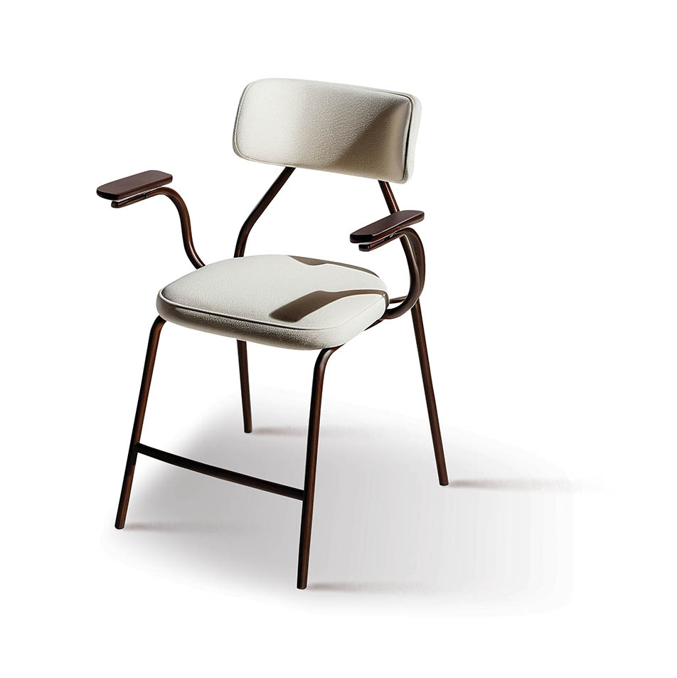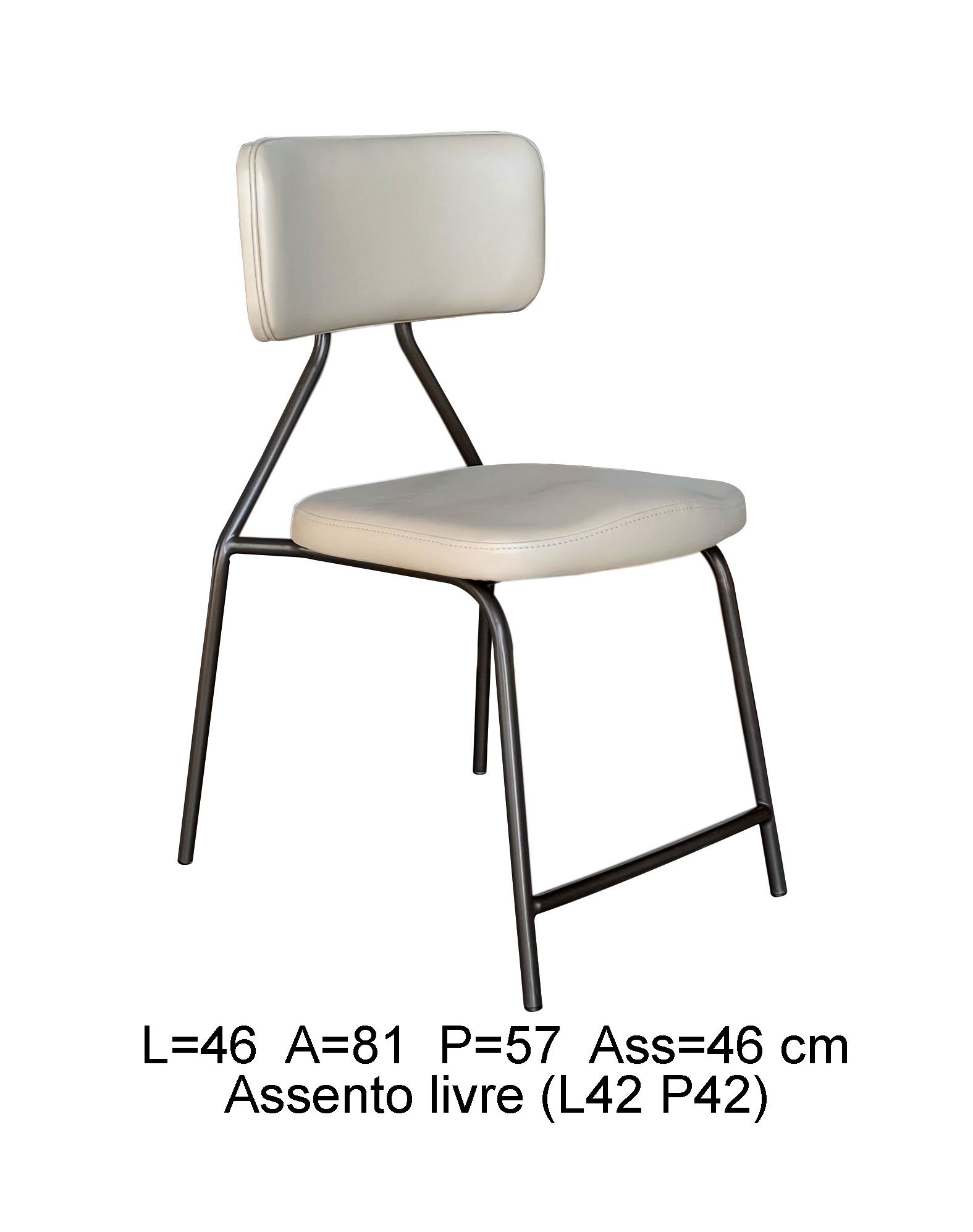 Cadeira fixa em aço carbono com pintura epóxi, assento e encosto em compensado anatômico de madeira estofados.