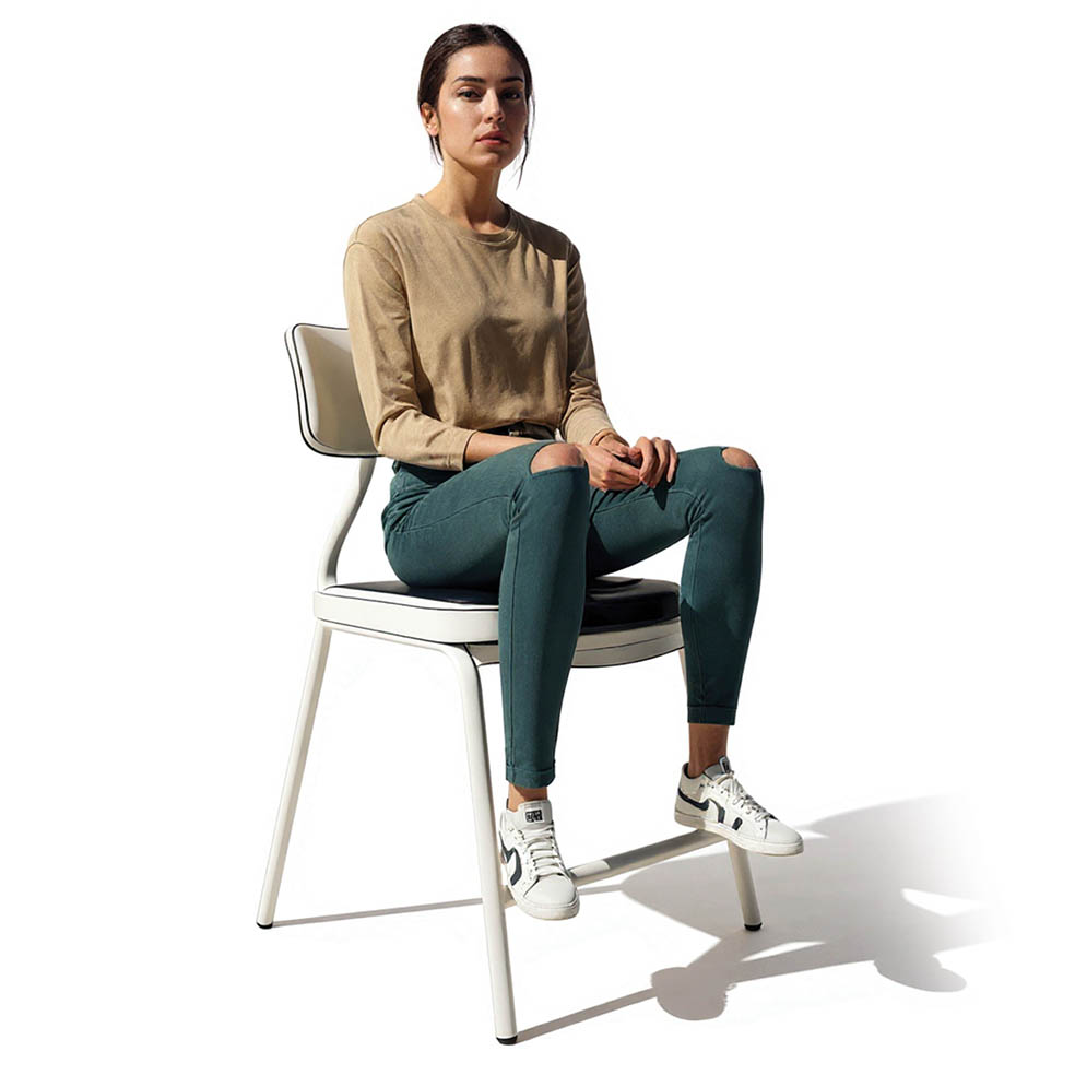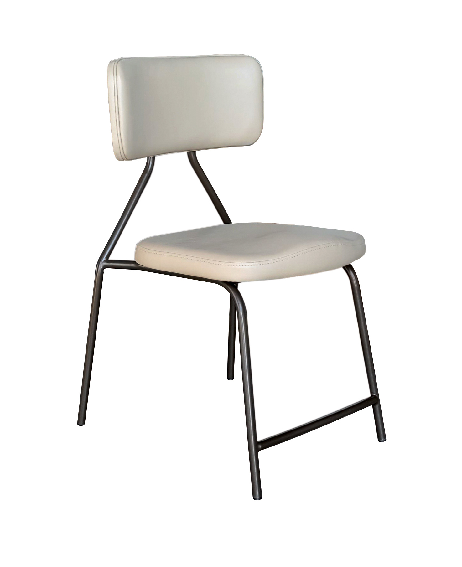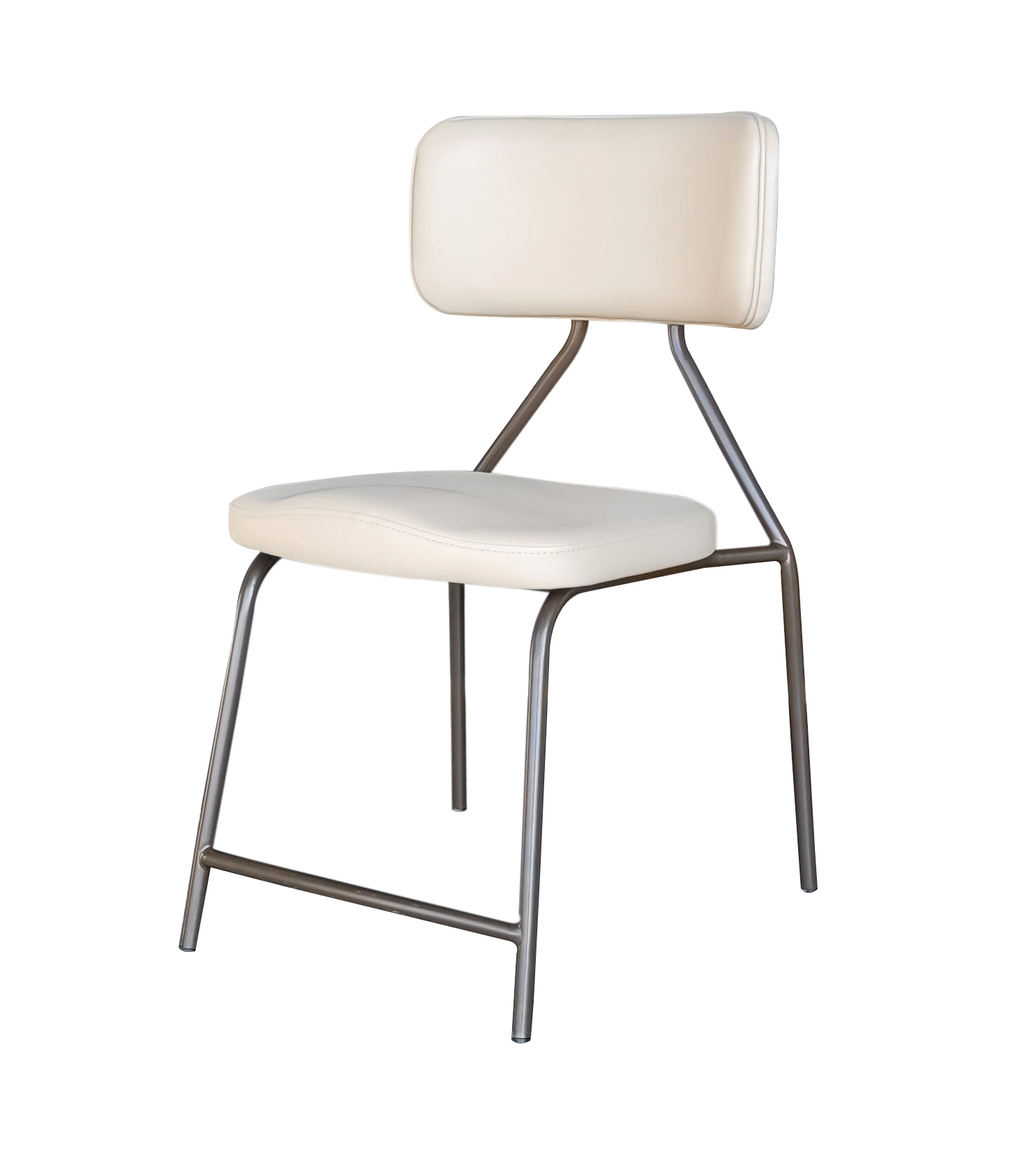 Cadeira fixa em aço carbono com pintura epóxi, assento e encosto em compensado anatômico de madeira estofados.